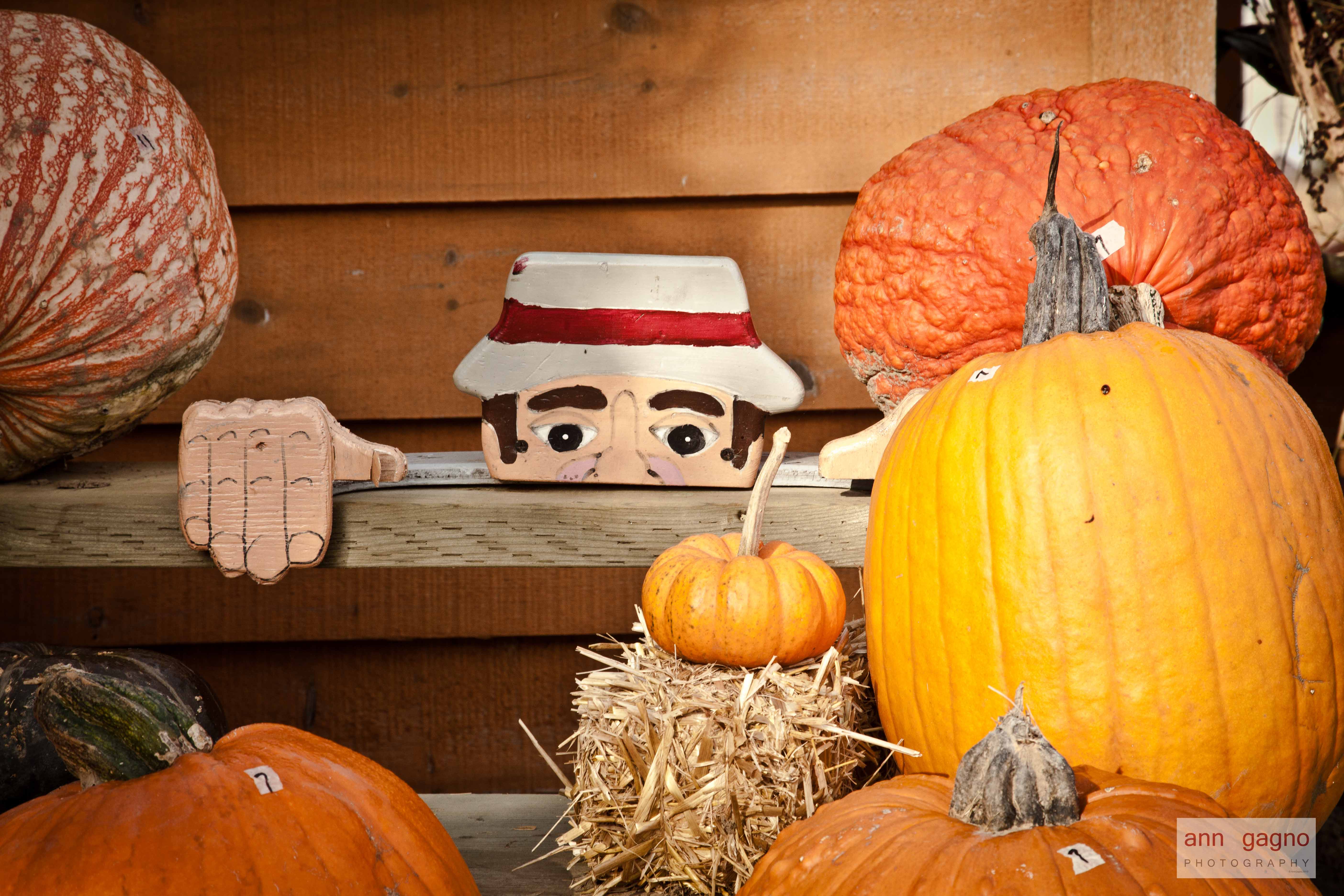 Just about 20 km east of Stratford, Ontario at Hwy 7/8, Smelski Giant Pumpkins is a popular destination at Shakespeare, Ontario. Aside from the obvious stall to sell pumpkins, there are lots of other fun things for kids to play and gawk at. There is a pumpkin playground to go crawl into, a haunted woody trail full of ghosts and creepy crawlies, an old 1952 Ford tractor pulling a wagon with a scarecrow lounging leisurely on a wooden bench. They have a lot of very interesting pumpkin arrangements and my favorite is the turkey pumpkin ;)