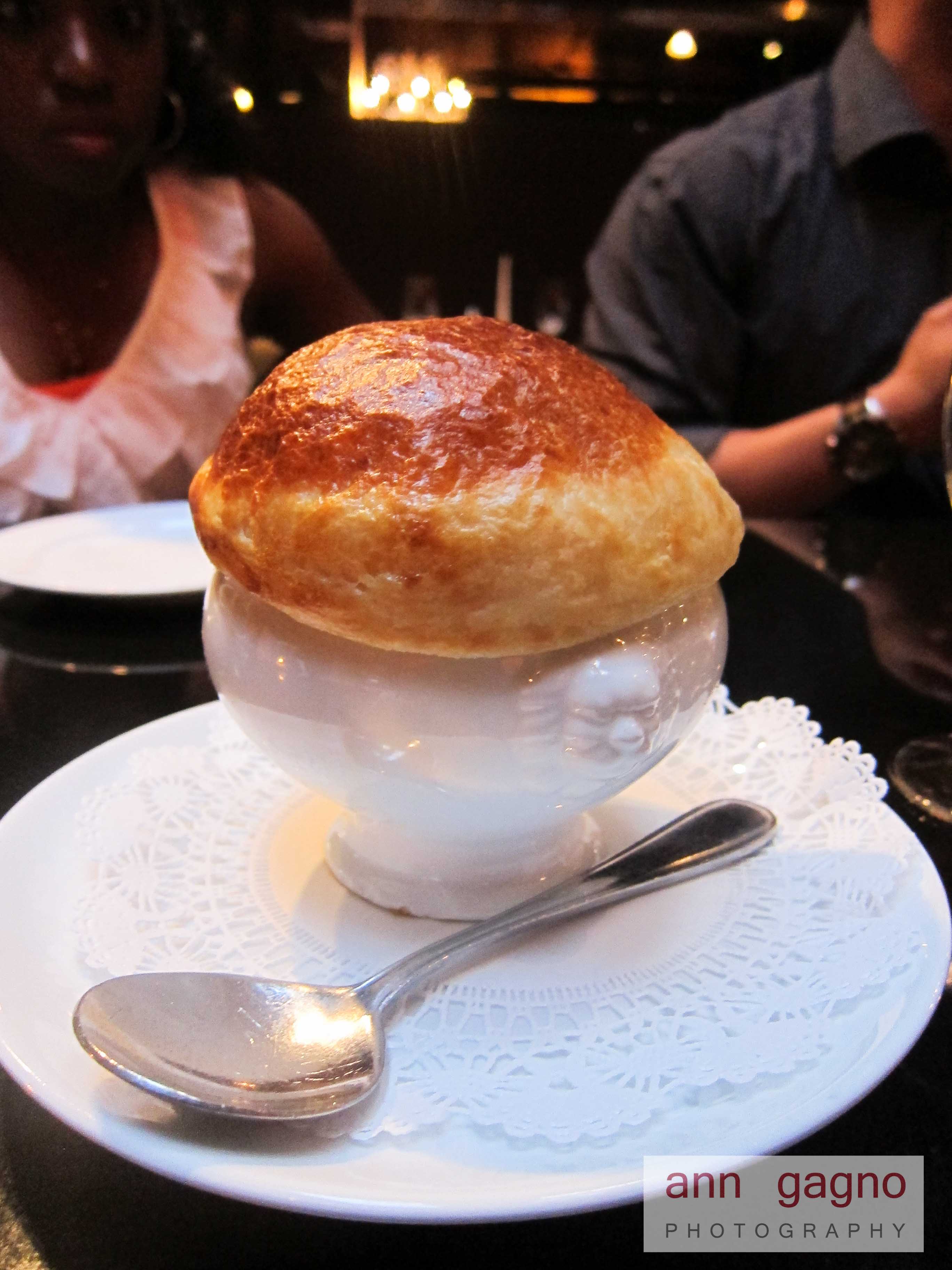 One of the best things that can happen to a blogger is that he goes with a big party.  It always presents the opportunity to sample more dishes.  The waiter served the starters and the most impressive was the Baked lobster & crab soup w/shot of sherry.  I felt a tinge of envy looking at it.  The puff pastry just beckons you to crack the top and spoon out all the yummy goodness inside.  I remind myself of my risotto.  I’ll wallow in all of my envy when I get my food. :p