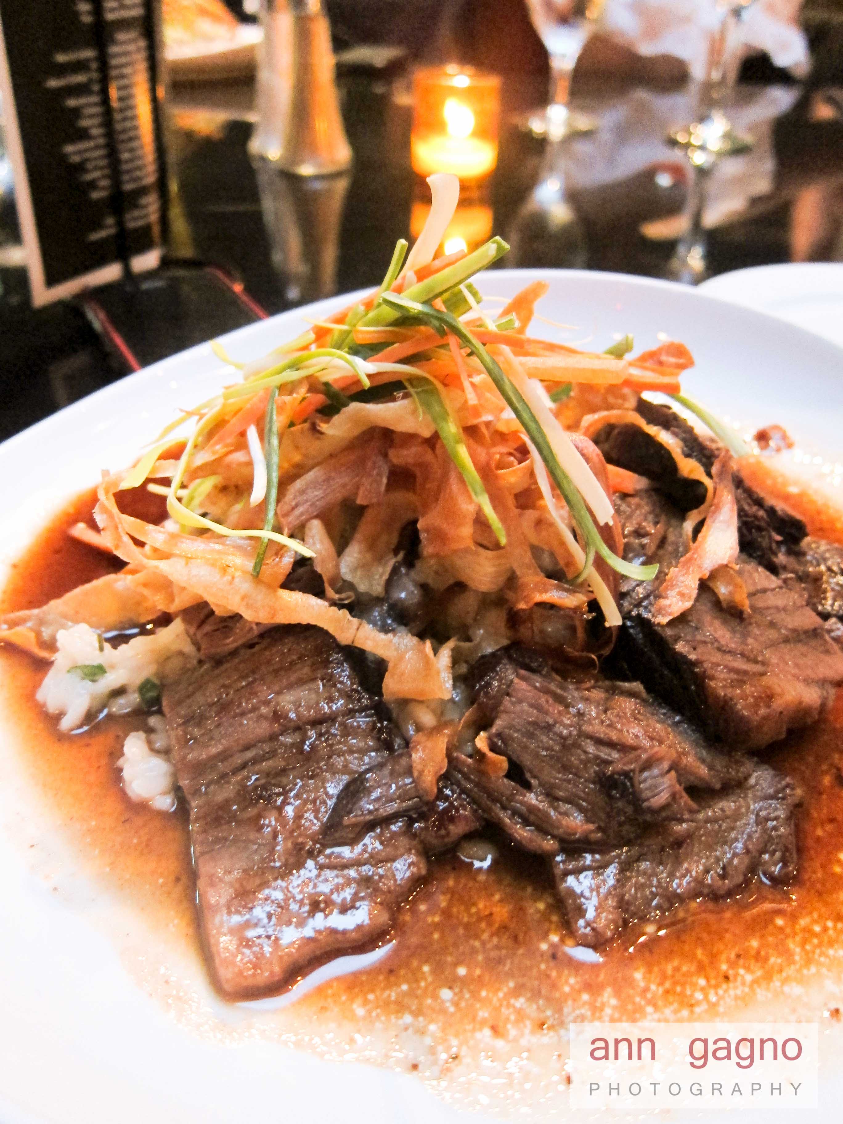 In a few minutes, my friends start trickling in and we are one big party of people.  The restaurant has a special three course menu for a big group with a set price of $40.  Much as I find a lot on the menu tempting, knowing how big Canadian dinner servings are, I opted to order from the regular menu and went for the 6-hour oven Slow Roasted Alberta “high river” region certified Angus beef brisket w/ grilled Portobello spinach risotto.  I am a believer that things cooked slowly for a long period is always a winner.  Seeing that it’s paired with risotto is even a bigger plus.  I skipped on ordering something for starters.  Risotto always demand a big spot on my tummy and I intend to finish each morsel.