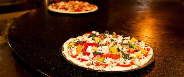 That night was yesterday. When I arrived Mickey’s Pizza, the party has already started. I walked into a brightly painted space whose walls were amassed with testimonials of how customers love feeding their dragons. Designed to have pizza for take-out, most of the space dedicated to the massive slow turntable of a pizza oven. The oven, encased in a protective see-through glass, allowed everyone to gawk and see how the cheeses bubble and melt as it goes round and round. Right beside the turntable was another tower of ridiculously high temp ovens to bake their deep dish pizzas. I sought out Sandi first and saw that she was in the midst of all the foodies she invited for the night. They already have a head start prepping pizza’s in the kitchen.
