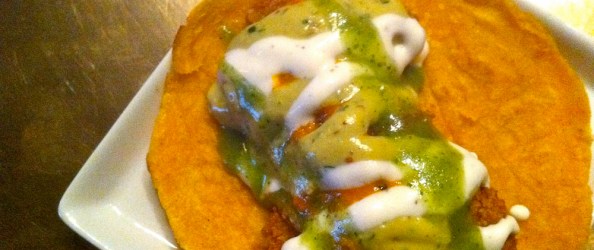 Arriving a bit late with my friend and food stylist, Abe Wornovitzky, we saw a healthy long line to the taco tables. I was expecting to see a full table of Supi Cucu’s tacos and a display of bottled Diablo’s Fuegos. What we later found out was that there was a second participant to the event. Woohooo! The more the merrier, I say. There were three tacos for the night. Two were created by The Fuel House, slowly cooked and looking so tender, whole hog taco with braised pork, salsa & roasted garlic sour cream; and a vegetarian taco with pulled jackfruit, Asian BBQ sauce w/ daikon, mango, snap pea, red pepper slaw. Supi Cucu’s taco was a promise of crunchy alligator tots, slathered with avocado rémoulade, chive coulis, Diablo’s Fuego, crema & pickled red onions. To anyone who knows me, I almost always opt for anything with meat (I can just see my grandmother frown that I don’t eat enough veggies). I took one of The Fuel House ‘s whole hog taco and one of Supi Cucu’s alligator taco.