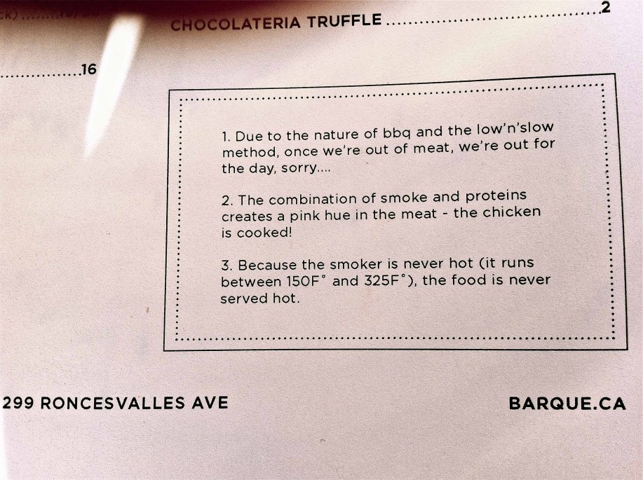Barque Smokehouse Menu Disclaimers