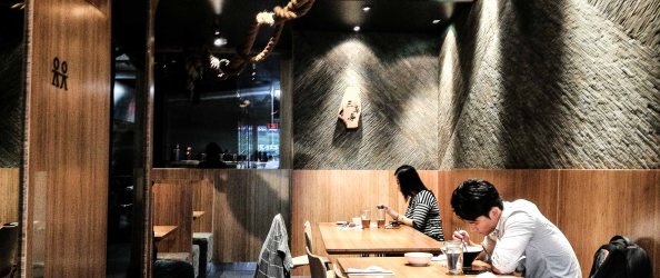 I made an impromptu call to my friend, Diona, to come to a late lunch with me. I know that most Mondays, she is free from her crazy schedule at Kanto. I took a chance and was so happy when I found out that she have free time today. Taking the subway, I alighted at Dundas station and started my 5 minute walk westward. I did not realize that this area was a whole host of Asian restaurants and the further I walk, I make a mental note of some places I want to try too. I finally arrived and I would have missed the place had I not checked out the façade before getting there. The front of the restaurant has an understated take on signage. It was a bold graphic design on the lines and logo but was with restraint with the name.