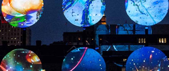 Walking out and heading towards Nathan Phillips Square, I passed by rows of food trucks. Peeking through the menu of The Food Dudes, I wish I have space in my belly for those Mac & Cheese Balls. Ah well, I have to search for them once again in a later food event. I was yet to digest the massive burger I just ate. So I moved on to Toronto’s city hall and saw 6 massive circular speakers doubling up as projectors. This time around it was a video installation, part of The Museum For The End of The World exhibit. The vivid images made me sit down on the pavement to watch the full stream.
