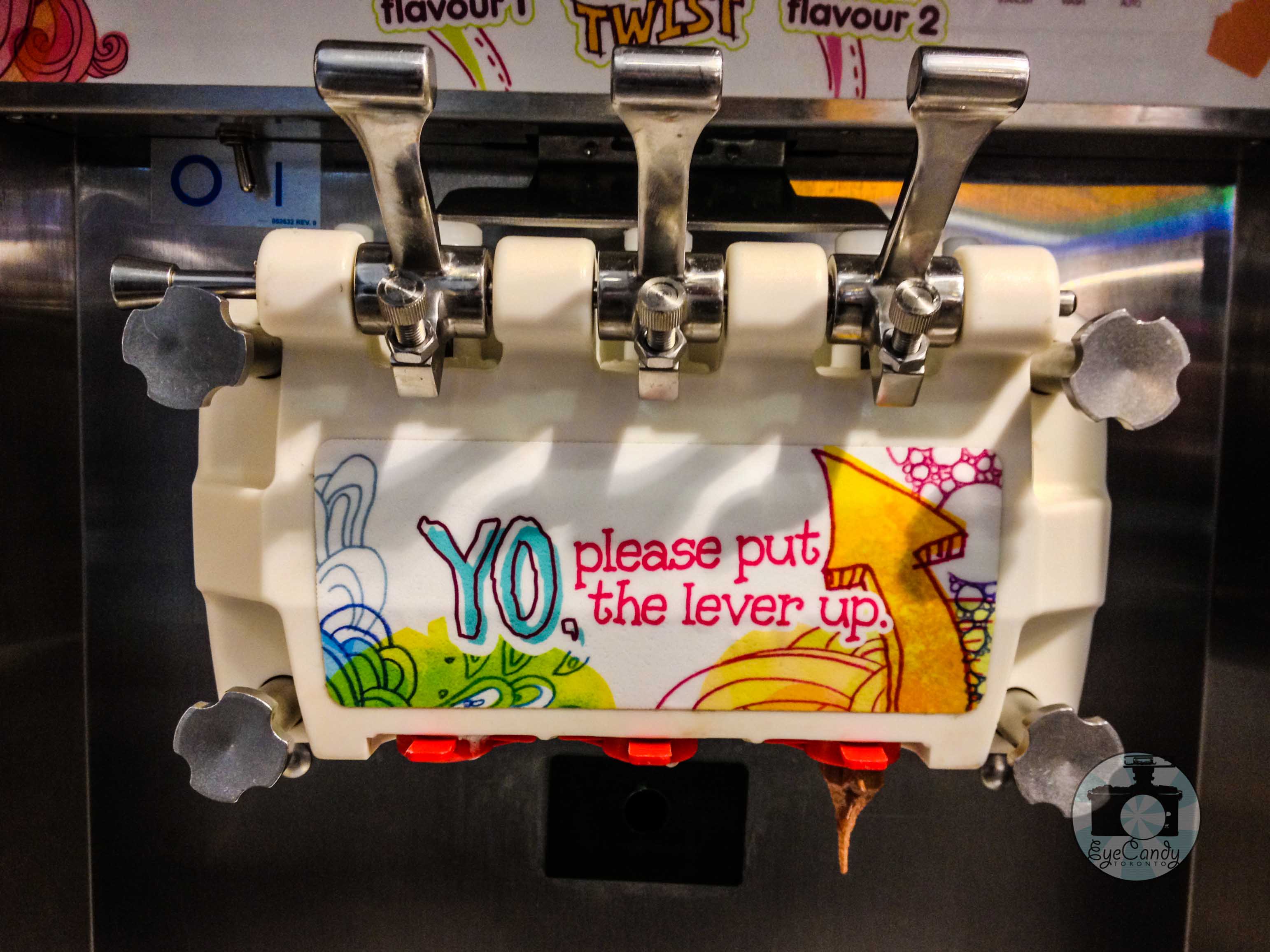 Nearest one we could find along our way home was Yogurty’s at Bathurst and Bloor. The restaurant was brightly lit beckoning you to go inside. It was surely made to cater to someone with a big sweet tooth. Rows and rows of toppings were available for toppings and the same could be said with the variety of frozen yogurt. The place was set for self-serving, allowing customers to come up with their creations to pacify their sweet cravings. I am not too adventurous with sweets so I kept my recipe conservative, my frozen yogurt of vanilla and pistachio and topped it with Butterfinger bits and red velvet brownie cubes. My creation looked so sedate beside Diona’s as she piled it up with gummies, lychee balls, M&Ms, chocolate marsmallows, chocolate shavings and brownies on three different frozen yogurt flavors. LOL. Before driving home, I took several spoonfuls and I could feel my tummy cool down. See? Wasn’t that a good justification for eating frozen yogurt?
