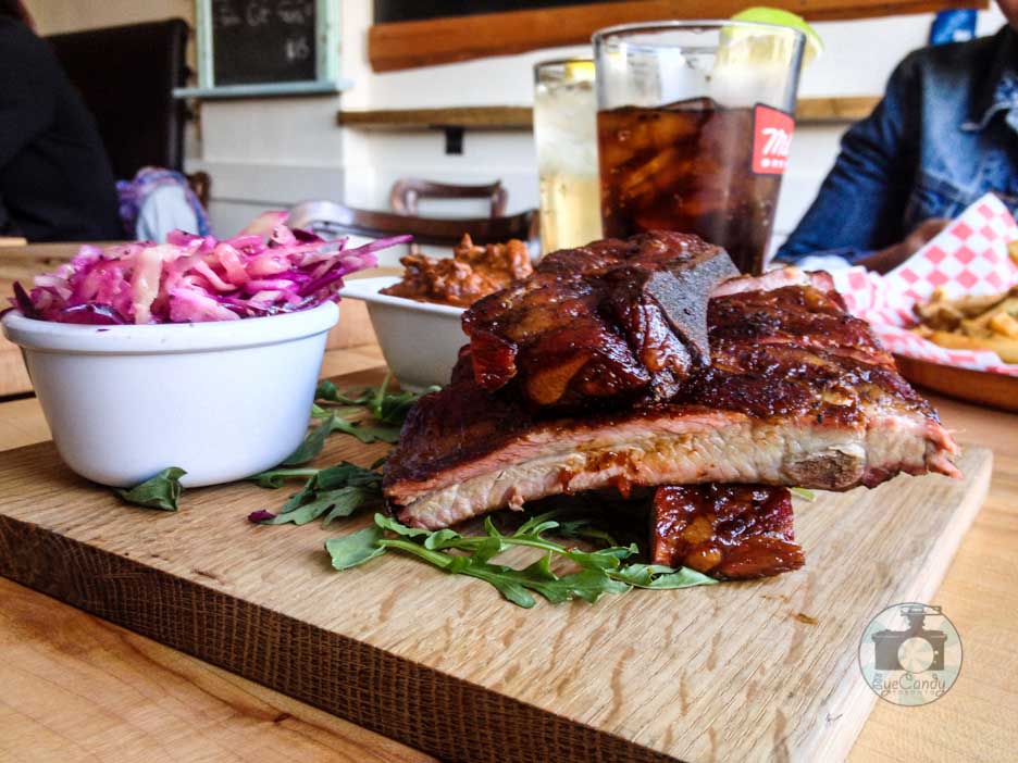 The food did not take that long as they smoked the ribs for hours before the restaurant opened. The ribs came beautifully plated in a slab of wood, with coleslaw and cowboy baked beans on the side. The chicken wings looked equally photogenic, plated with red checkered sheet and a generous pile of hand cut fries. I appreciated the fact that Jared stopped me ordering my own serving of fries as I think that would just be too much food if we have double the amount. Just looking at the food in front of me already was a comfort. It looked moist, rich and just begging me to stop-taking-pictures-and-start-eating-right-now. Of course, after a few clicks I did start listening to my inner foodie nagging voice. Sometimes the foodie did precede the photographer. LOL.
