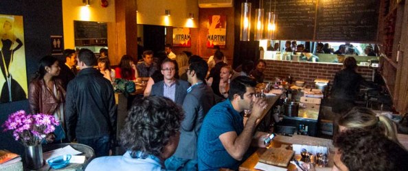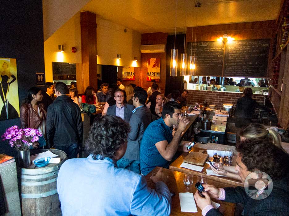 Alighting the TTC streetcar, I found myself 5 minutes early to the event. As I waited, I tried to peek through the big open window to see the interiors. Bar height tables for the most part and as expected, a wall full of wine bottles. The kitchen has a window connected to the bar, giving someone from the dining area access to what was happening in the kitchen. Cooks hustled as I watched and the same could be said for the people behind the bar. On the same brick wall with the kitchen window was a huge black board listing the new tacos menu. Conventional would be the last word I’d use for these tacos.