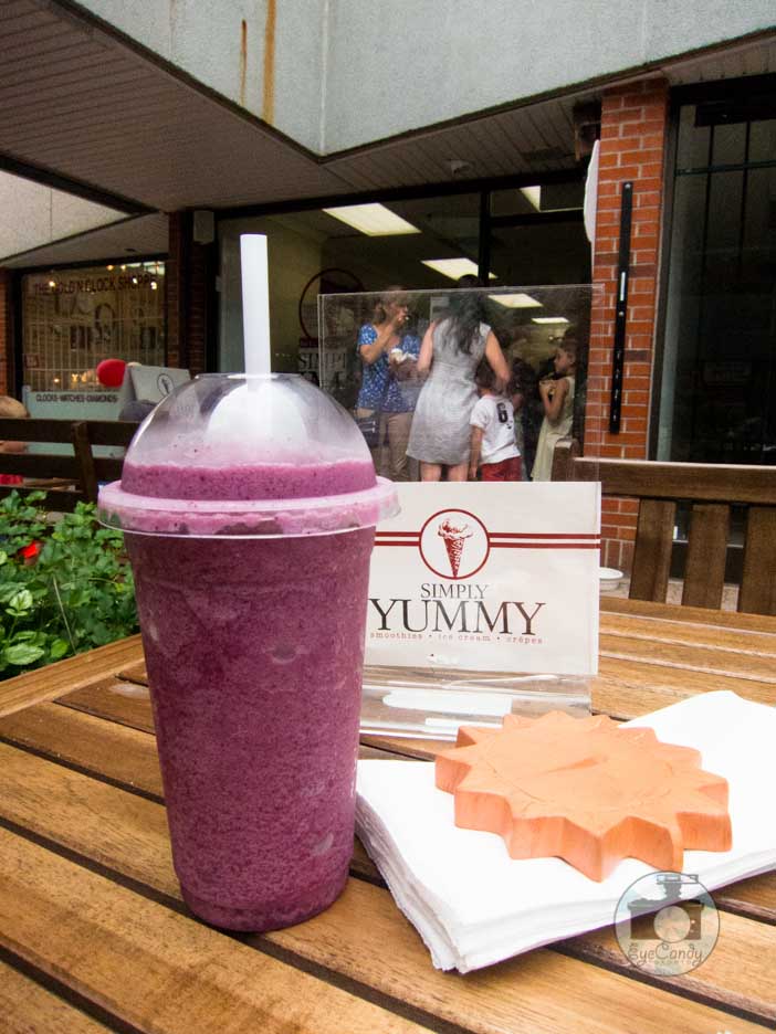 As I waited in line, I spun around to take in all what was around me. I noticed that they even have ice cream cakes! Later on I found out that this ice cream cakes were made with the same ice cream as what they put in the cones. Apparently, they are the only ones to make ice cream cakes that uses Kawartha Dairy or Greg’s Ice Cream. That alone would be a reason to buy some. When I finally had my turn, I opted for something other than ice cream. I had my heart set for Simply Yummy’s Butterscotch Crepe and a large Big Berry Smoothie. Normally I would go for something salty but seeing the delight in the faces of the kids enjoying sweet treats, I thought I’d follow their lead.
