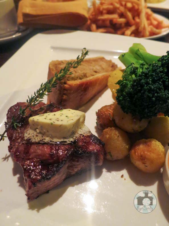 What followed next was a sampler of traditional Tourtière (spiced house meat pie served with frites and house apple-tomato chutney) and a New York steak with a generous pat of herbed butter. Onto the same plate was also serving of steamed vegetables and roasted tomatoes. Of the two, my favorite would be the New York Steak as it was done as I have requested, succulent, moist and tender to bite.