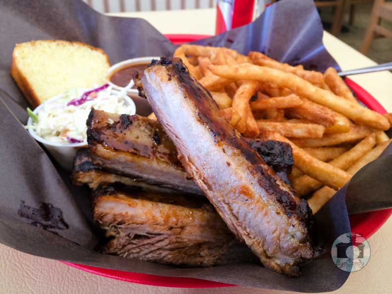 What was really striking to me were the prices in the menu. I find it almost hard to comprehend how much food I would be getting for the money I was about to pay. I chose the smallest portion and was astounded when the server placed a plate that I could easily share comfortably with a second person. With the plate came the ribs, a side of baked beans, coleslaw, crispy fries and generous slice of corn bread.