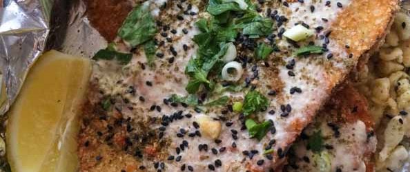 Driving to Yonge and Steeles, I was able to find it at northwest of the intersection, just right across Canadian Tire. Parking was easy enough and I strolled into a small restaurant. A few tables for diners with huge blackboard with the menu, it had the feel of a cafeteria. As I approached the counter to order my meal to-go, I saw a buffet of salads that lined the service area. Seeing beets, I already knew then that I would get it. I love beets but find I have to clean so much when I roast some. Apparently, there is an option to ask for veal, chicken or an eggplant for each dish listed in the menu. Asking the woman behind the counter what was the crowd favourite, she pointed two things to me, the Parma Schnitzel and the Sesame Schnitzel. Looking for something unusual, I went for the Sesame Schnitzel as its components could make your mouth water. It’s a schnitzel (I chose chicken) that was topped with an extra eggplant schnitzel with generously drizzled with tahini and fragrant zaatar, giving this dish an middle eastern twist. My combo came with two sides, so I opted for the beets salad and spaetzle. It is as unusual a meal for me and I was giddy excited.