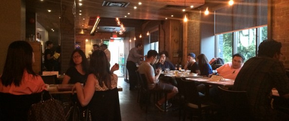 Unlike its predecessors of poutine-centric food stops in Toronto, PoutineVille is a full-serve restaurant with an alcohol license. Walking in, it has impressive interiors and a lively vibe. A long bar greets you by the door and the walls are exposed brick adorned with impressive retro images of Toronto, complimented with wooden tables and sleek tufted leather banquettes. I was late but I was handed a cocktail right away as I sat. I was just in time for the speeches from owner Kosta Kariotakis and I heard that I was in for an indulgent evening.