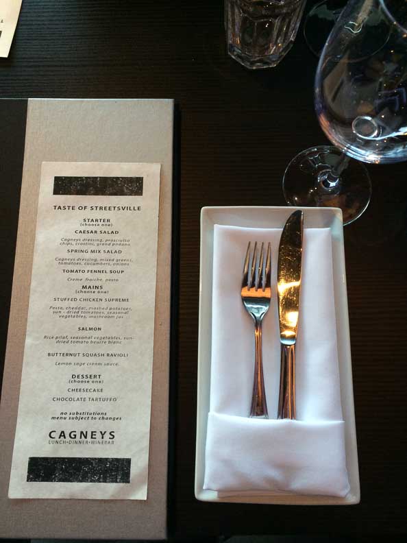 I made the silliest of mistakes when I was trying to find Cagneys at Streetsville. I thought it was by the line of small shops at Queen St and I was going in circles trying to find parking. Good thing that my friend Helen gave me a call and told me that Cagneys was actually in a strip mall a bit north of the small shops where parking lots were a dime a dozen.