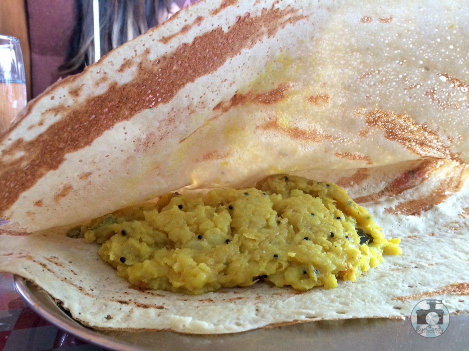 I was thankful I only went for Masala Dosa and not the Mysore Masala Dosa. The heat of the Masala Dosa was just enough for me and I could feel the sweat start forming at the base of neck. If you have a high tolerance for heat, maybe you can tell me about the Mysore Masala Dosa. The Masala dosa was at the edge of my tolerance. Even if I can feel the heat, I still kept eating it as it was so satisfyingly flavourful and filling. I don’t know if I ate it the right way but I pinched small pieces of the dosa and I tried my best to grab the potato filling as I go.