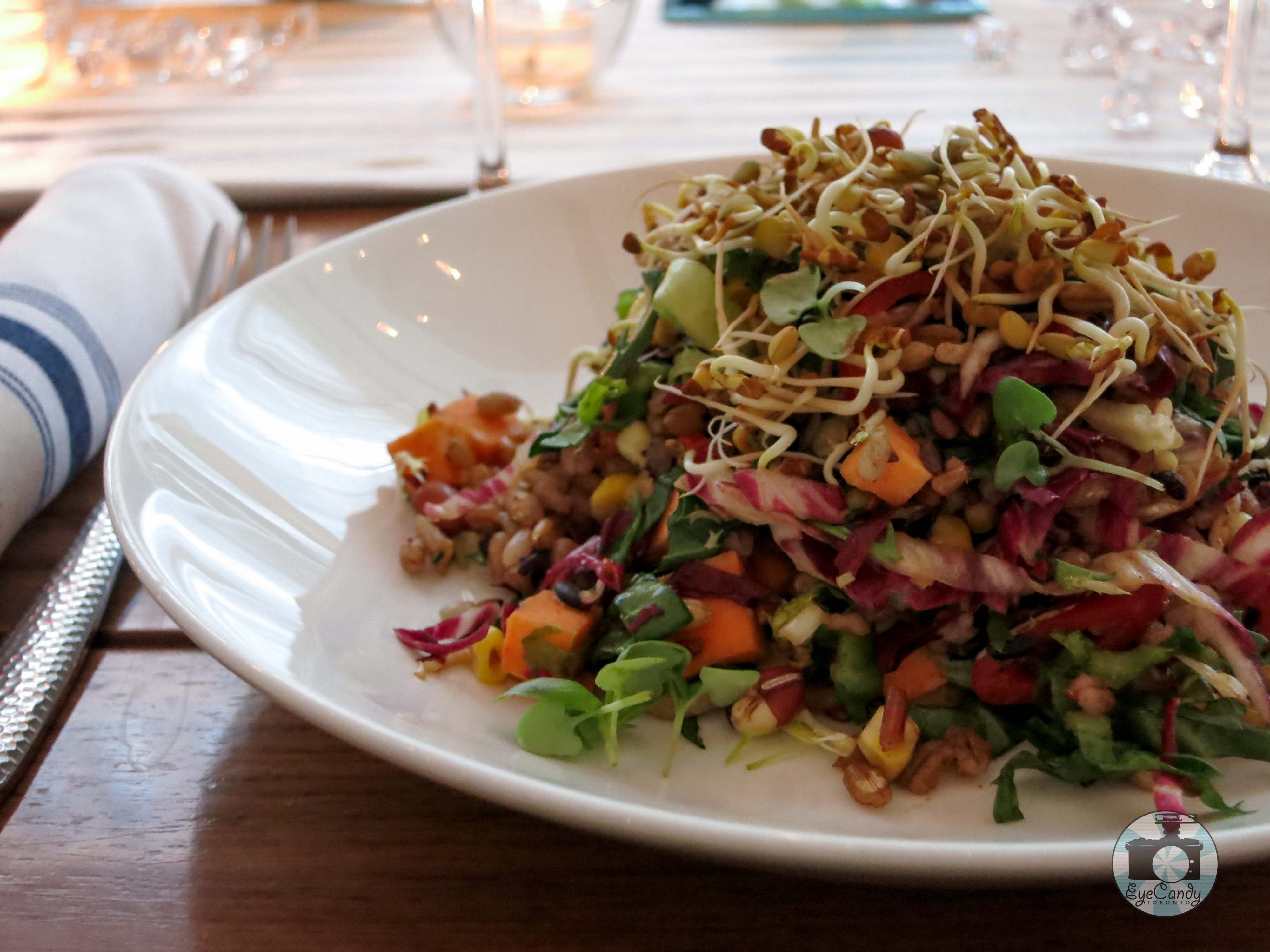 When dinner finally started, we were in a treat to dine on Chef Michael Smith’s recipes interpreted by the resident chefs of @TheChaseTO. We started with Sunny Southwest salad, a mix of heritage grains and peppery greens, grilled corn, pickled yams with flaxseed vinaigrette. It was one of the prettiest salad that I have seen, full of texture and bursts of color so of course I went paparazzi style on the plate. I loved the heat that finishes the different plays of shapes and textures as I have a heaping forkful after another.
