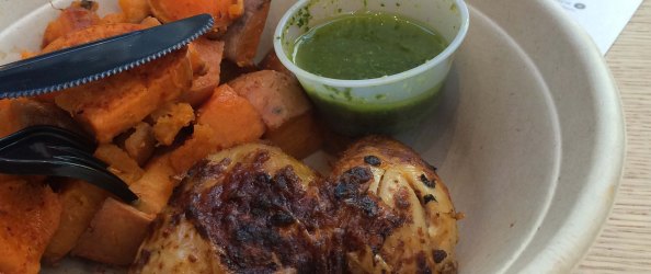 The service was pretty quick and they handed me my roasted chicken and sweet potatoes in a paper bowl. The aroma was very inviting and my tummy went growling. That was why I only have a few pics to show. I was way overdue for a meal and it was harder to take pics for my blog when my hunger took over. The chicken was soft, moist and flavourful and I was right about the sweet potatoes cutting into the richness with the lime giving it that highlight to keep things interesting. Everything in that bowl I finished, licking the bones literally. I do that when I really like the roasted chicken. It’s that little frame of time where I am happy and sad at the same time that I just finished a good meal but I know I am too full to have more. Happy and sad and I can’t decide for a second which one I will be. I know it’s all silliness but it was what was going through my head as I put down the bone. LOL.